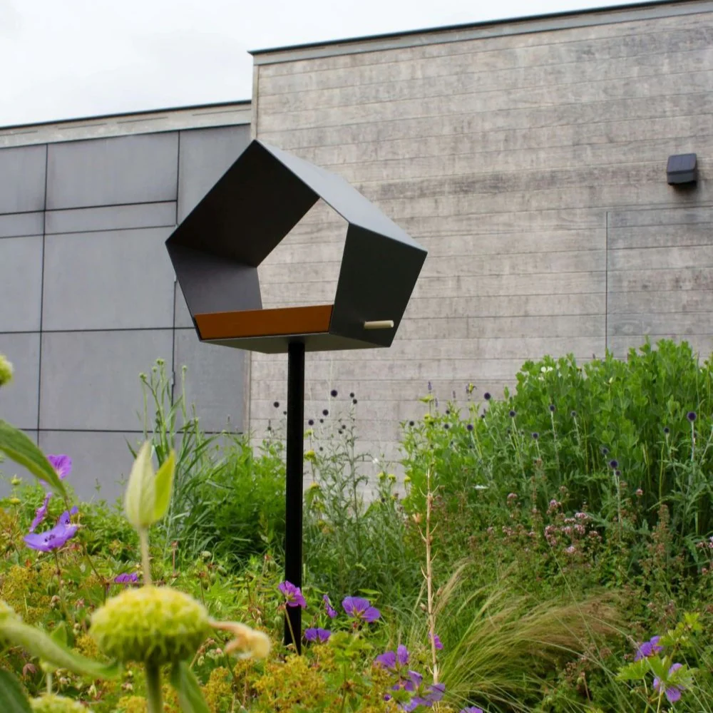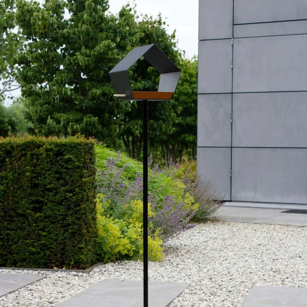 Breng stijl en leven in je tuin met het Big Diamond metalen vogelvoederhuisje, een modern vormgegeven voederhuis dat niet alleen vogels aantrekt, maar ook een echte blikvanger is. Het diamantvormige ontwerp en de minimalistische uitstraling maken dit huisje tot een decoratief pronkstuk, geschikt voor elke buitenruimte; van een strakke stadstuin tot een natuurlijke bostuin óf van terras tot balkon!
