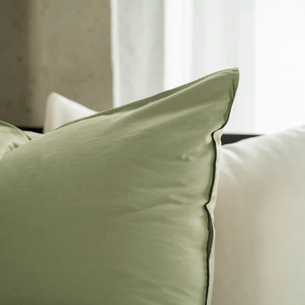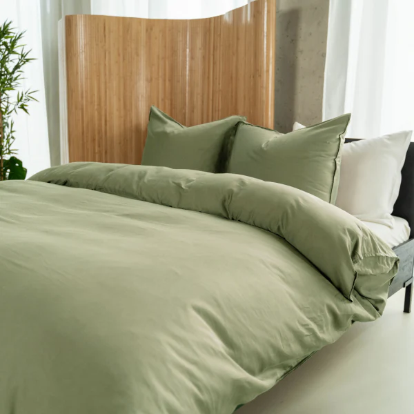 Luxe kwaliteit duurzaam Dekbedovertrek EDO gemaakt van 100% organisch katoensatijn in prachtige kleur olijf groen