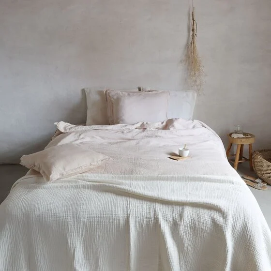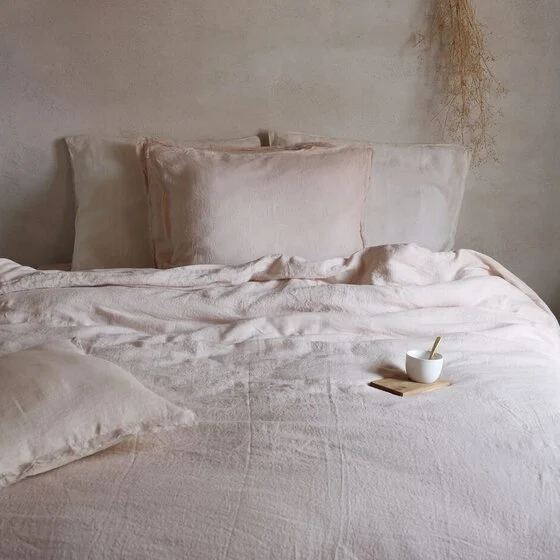 Klassiek zacht roze, Powder dekbedovertrek gemaakt van een combinatie van 100% puur linnen met zacht katoen-satijn