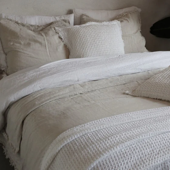 Dekbedovertrek Eve is gemaakt van linnen en katoen satijn. De bovenkant is gemaakt van 100% gewassen linnen, de onderkant van katoen satijn zorgen voor een comfortabele nachtrust en een tijdloze, exclusieve uitstraling in je slaapkamer.