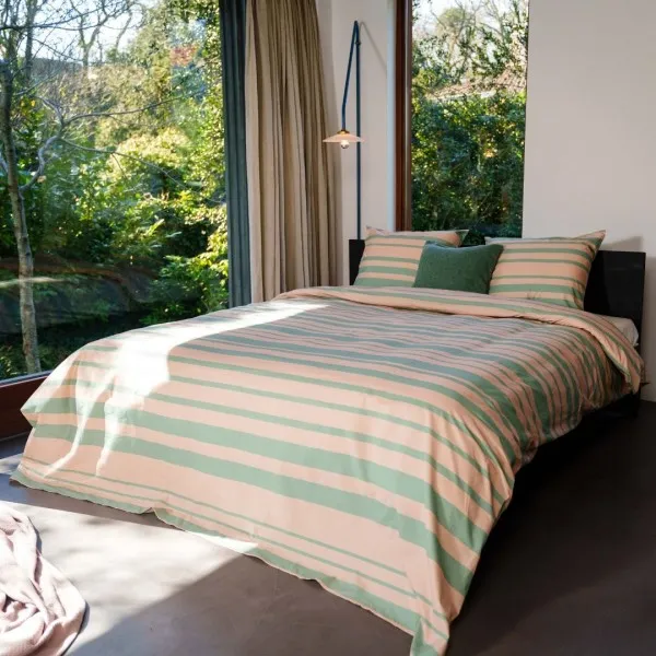 Olive: De kleuren oudroze en olijfgroen geven het overtrek een speelse en kleurrijke look in de slaapkamer.