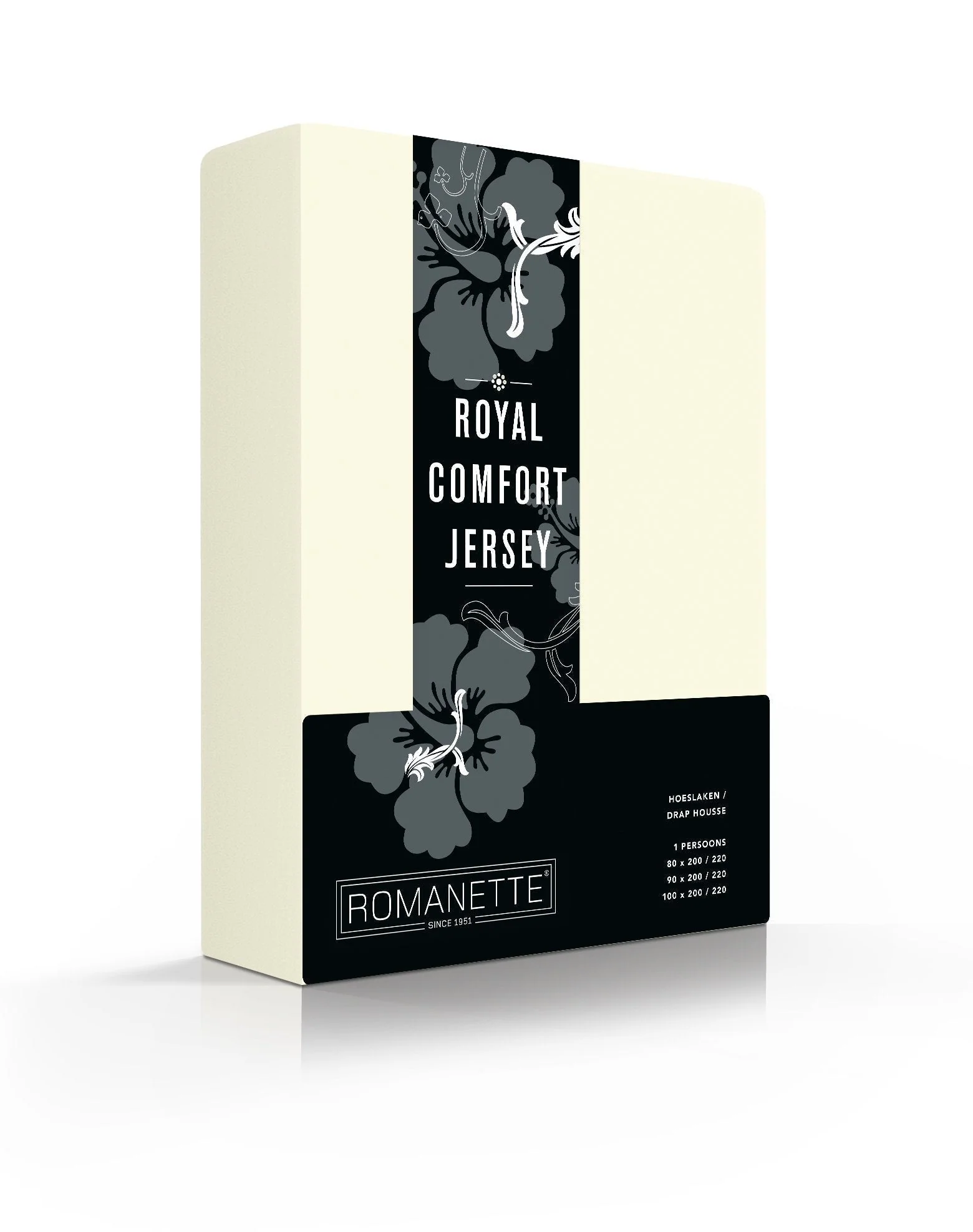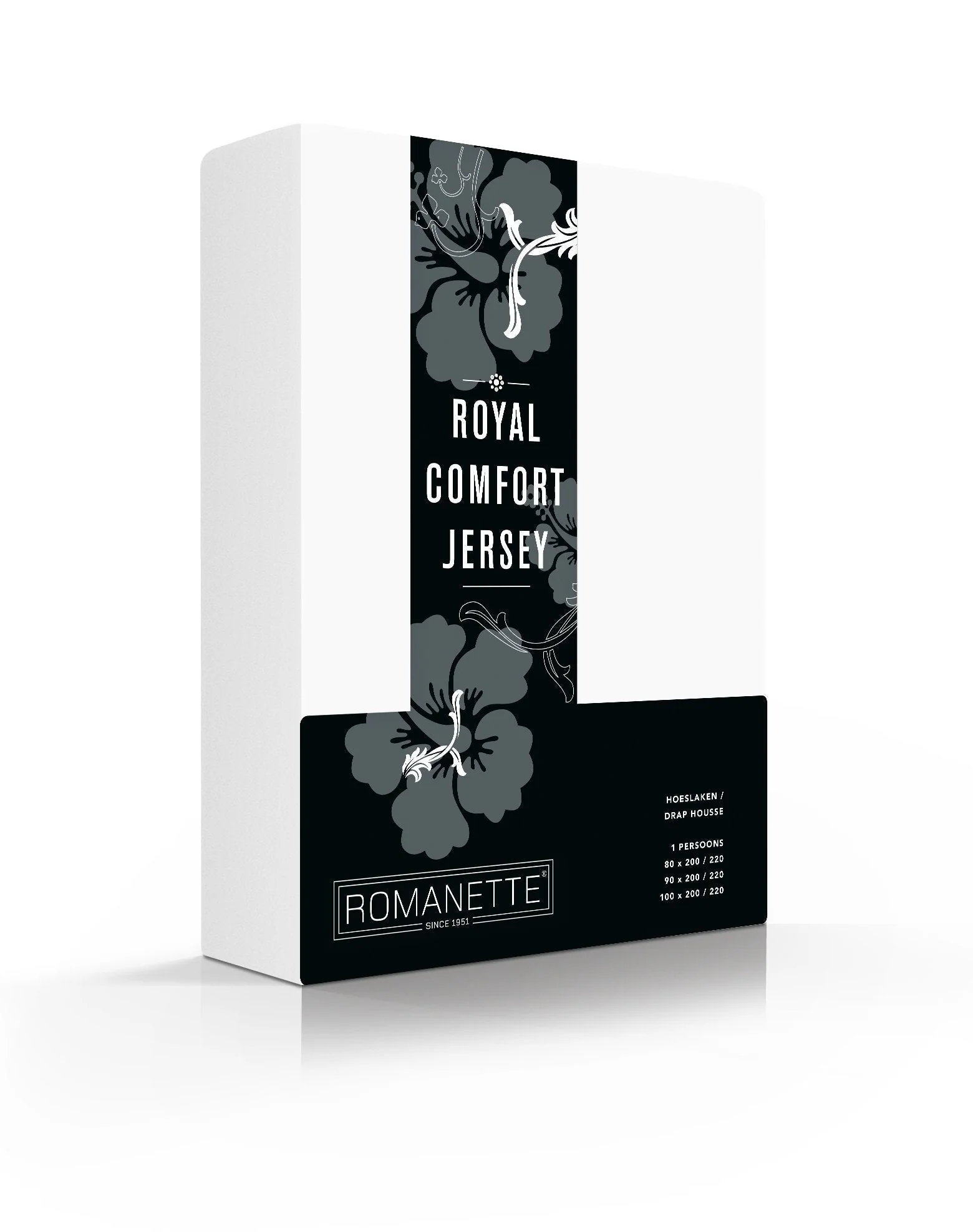 De Royal Comfort Jersey hoeslakens zijn gemaakt van de fijnste gekamde Egyptische katoen gemengd met lycra elasthan garens (5%) voor een hoge elasticiteit en een rimpelloze pasvorm om het matras. De benaming Jersey slaat alleen op de breitechniek. De dikte, kwaliteit en rekbaarheid kan echter verschillen. Zo wordt er onderscheidt gemaakt tussen Single Jersey of Double Jersey. Single Jersey is dunner en heeft alleen aan de voorkant een v-patroon. Double Jersey is dikker en daardoor het meest stevig onder de Jersey soorten.